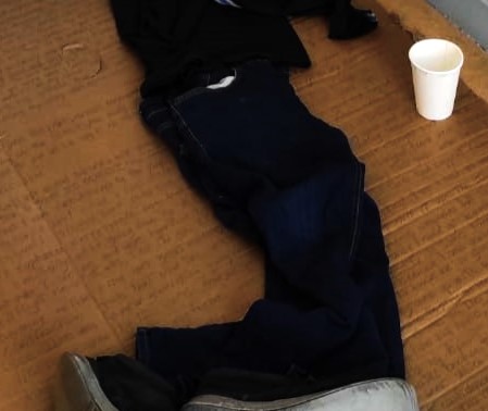 Invisible 2022, Installation, Cardboard, threads, found and recycled objects, clothing items.