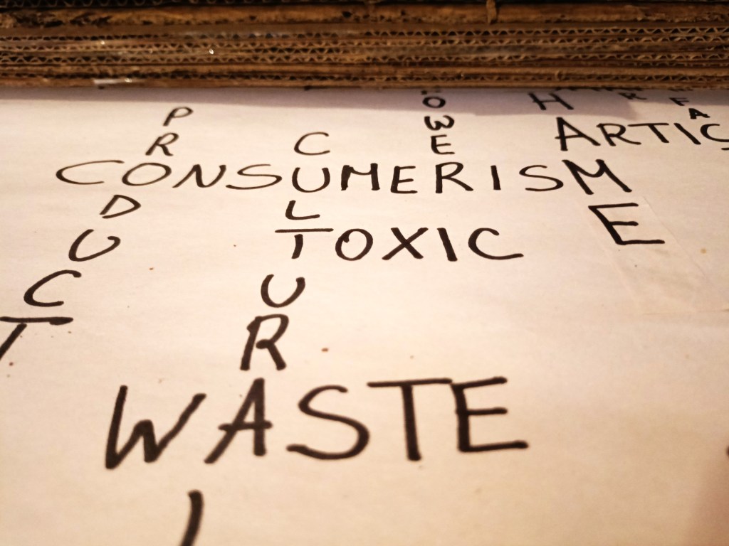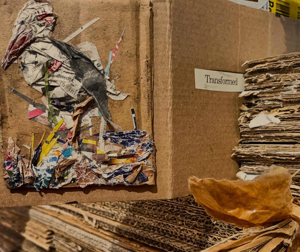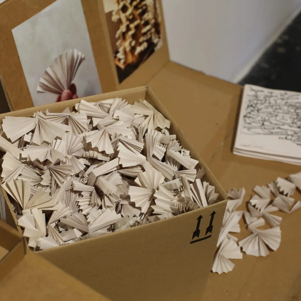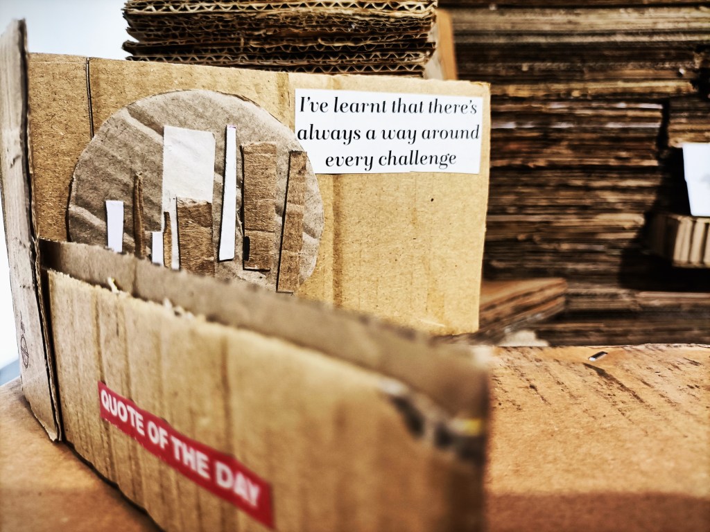 Paperwork and Words of Life aims to be a structural representation of how my brain works, almost an attempt to have the viewer directly step into it as I often find it difficult to express my train of thoughts in a coherent way as my mind has a tendency to follow many ideas at once. The original title for this installation was Connections, precisely because I wanted to transmit to the viewer how, sometimes, different ideas and approaches can contribute to a complex concept. The installation, mostly made out of cardboard and paper, includes various self-made books, where I show photographs, processes and experiments, tributes photographs, newspapers’ articles along with a live performance which consist in myself writing on the walls using the word-association technique which I use on a daily base as a way to brainstorm and possibly fundamental for the overall understanding of the work. With this work I’m exploring the relation and impact between the contemporary world on myself and on society as whole.